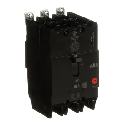 Breaker ABB TEY360 de 3 polos, 60 A. Instalación tipo bolt-on, diseñado para uso comercial o industrial.